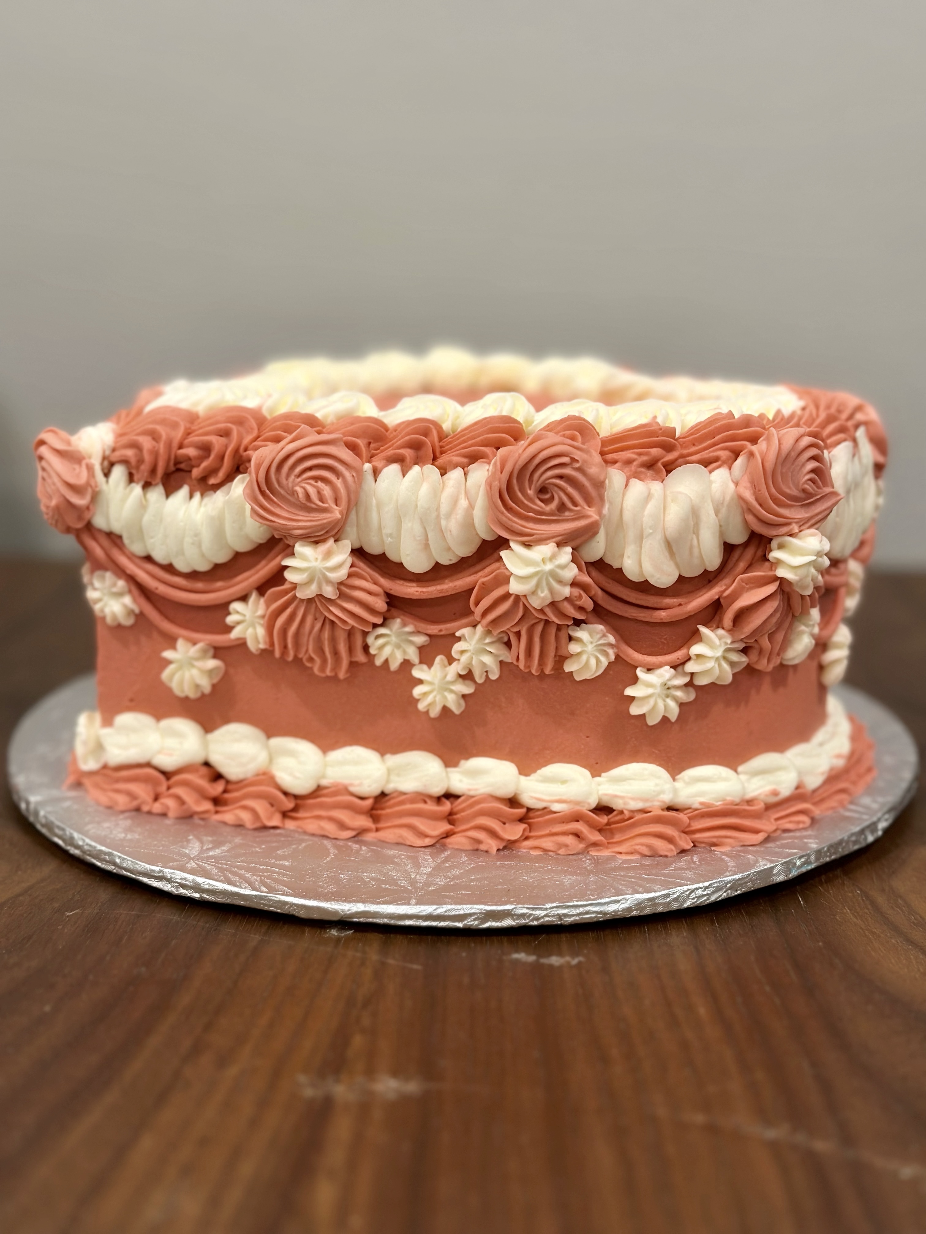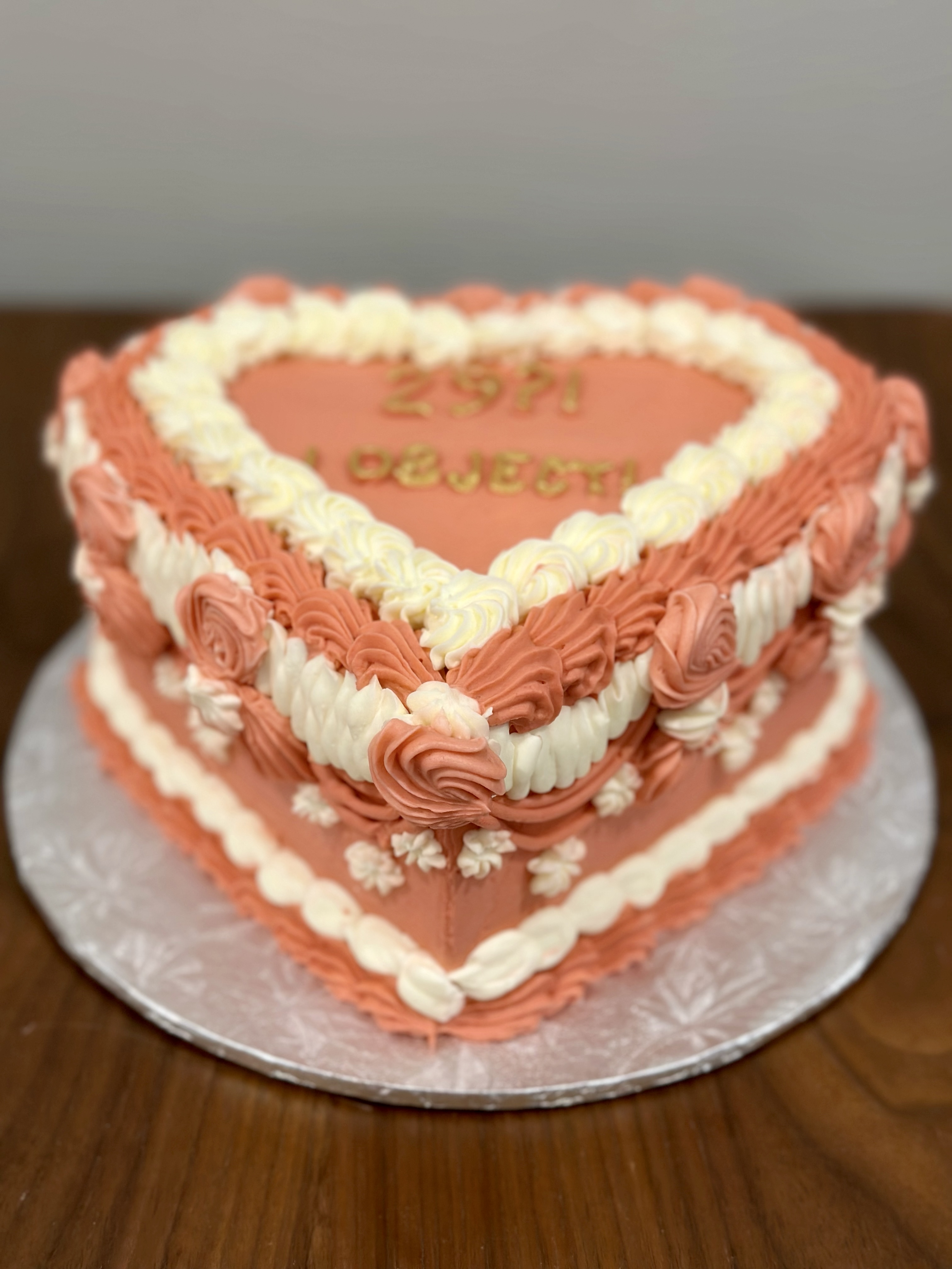 The 6″ Heart-Shaped Cake with Vintage Lambeth Piping is more than just a dessert; it’s a work of edible art. No two cakes are ever the same. Choose your colour scheme of monochromatic, two-toned, or two colours and let the artistry begin! This cake serves up to 12 party sized slices. Pricing starts at $160.